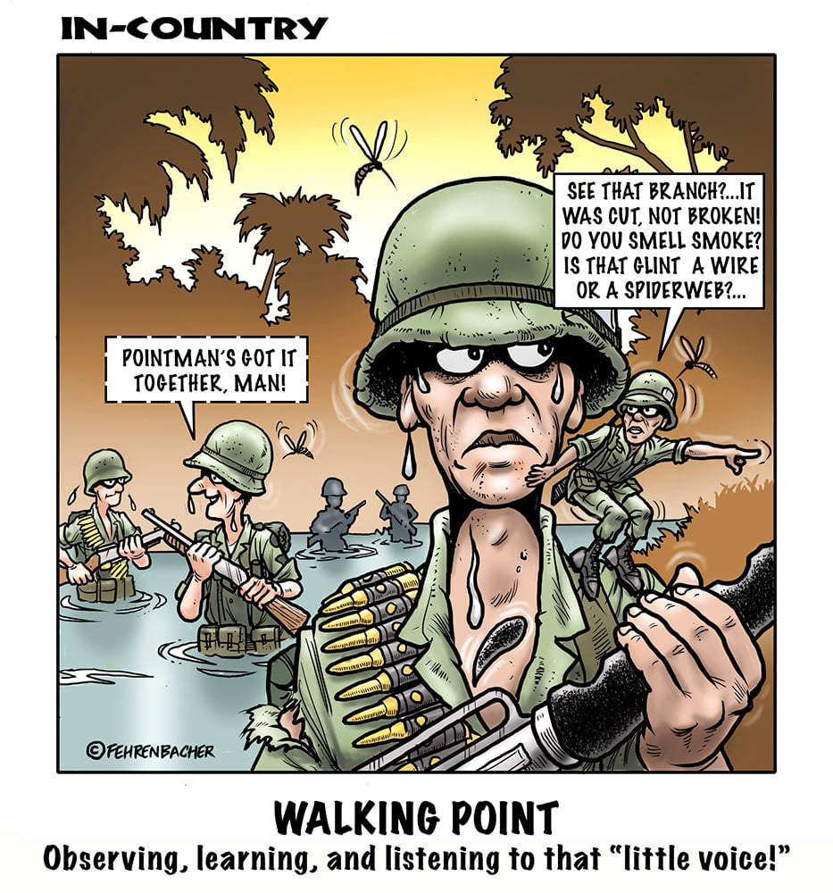 Phil enlisted in the Army in 1965 where he served for years in Vietnam. He became a graphic designer and has worked for the state of Oregon for 26 years. He retired in 2003 and started the Cartoon "In-Country". The cartoons reflect his experiences during his tour of duty in South Vietnam.